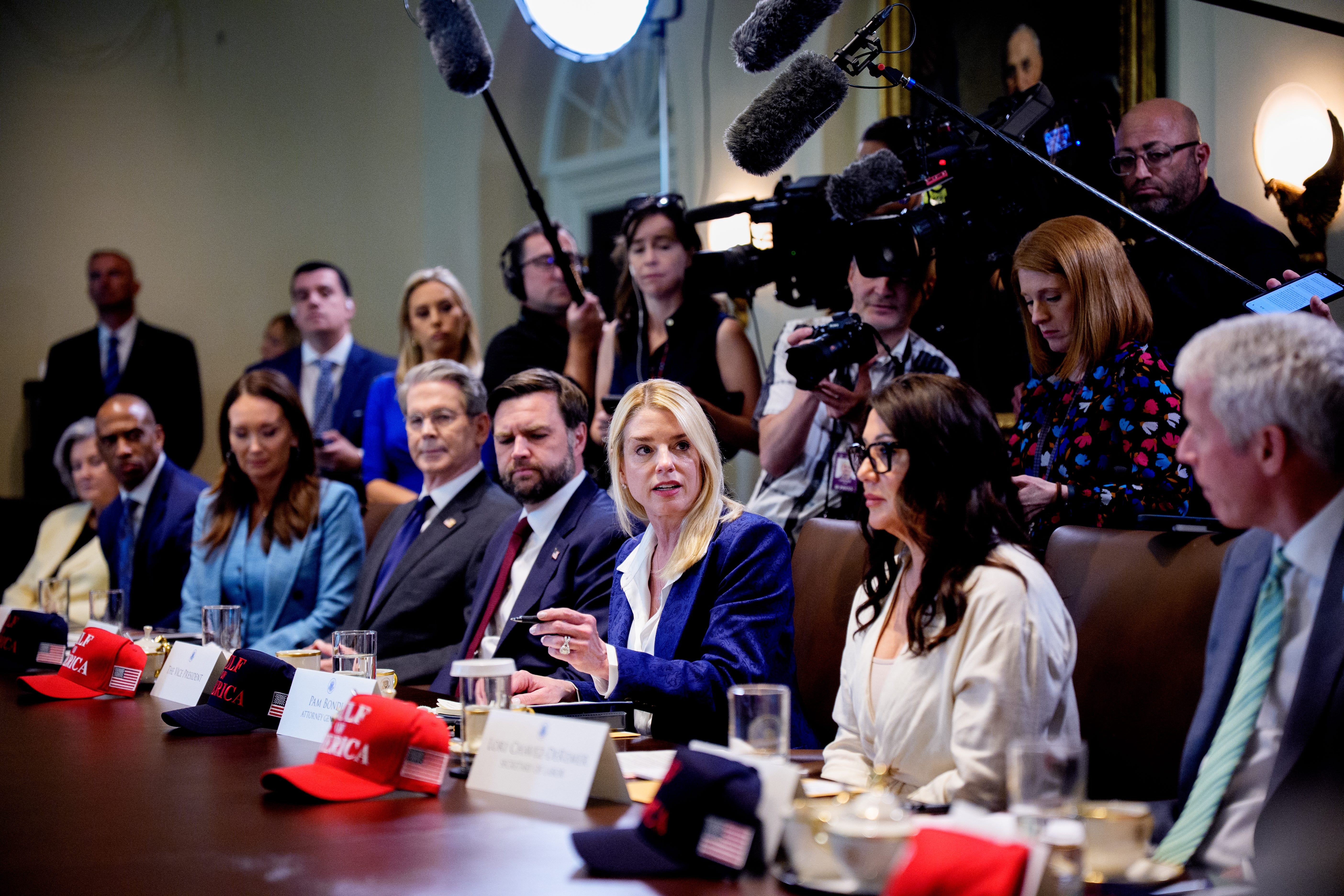 If you can believe it, it got more cringey. Pam Bondi, the attorney general, could barely contain herself: “Mr. President, your first 100 days has far exceeded that of any other presidency in this country. Ever. Ever. Never seen anything like it. Thank you.”