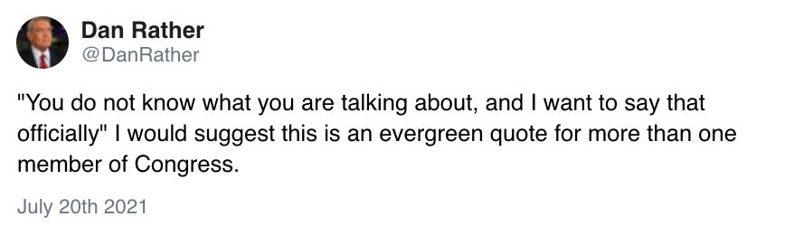 Today’s walk through some of my tweets may be a different in tone than some of the previous fare, but these are serious times and I would like to start today with a desperate appeal: if you are able, and haven’t done so already, please, please, please get vaccinated. If you are hesitant, talk to your doctor. Listen to the experts. Please consider changing your mind. The Delta variant is very serious and on the rise and virtually all COVID hospitalizations and deaths are among unvaccinated people.