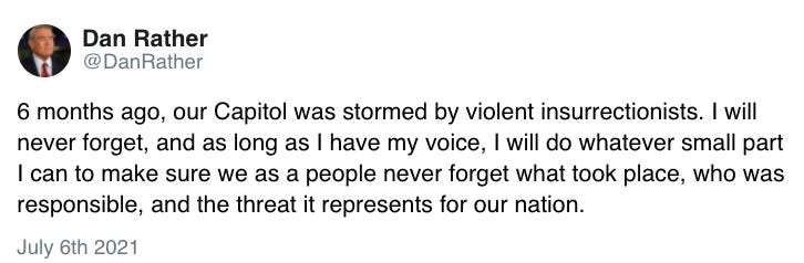 The 4th was not the only milestone date that July had to offer. On a more somber note, it’s hard to believe but half a year has passed since insurrectionists stormed the Capitol. I —and I believe most decent Americans— will not choose to forget. Our democracy depends on this vigilance.
